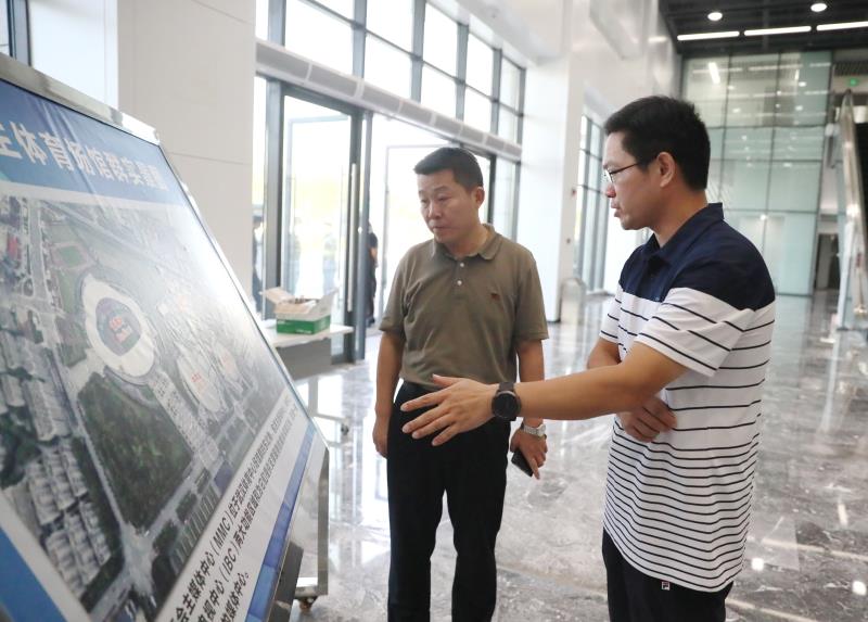 18日上午,湖北省体育局武术(冬季、极限)运动中心主任王煦来武汉体育中心发展有限公司(以下称:武体公司)调研冰上项目场地建设情况以及后期青少年后备人才培养等工作。公司党委副书记、总经理吴志锋与王煦一行就军运会主媒体中心赛后改造成为“武汉国际体育文化交流中心",并在馆内规划建设标准冰场的平赛利用进行了充分的商讨。